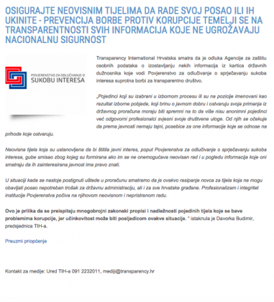 Kontakt za medije: Ured TIH-a 091 2232011, mediji@transparency.hr
